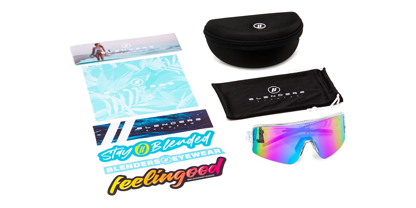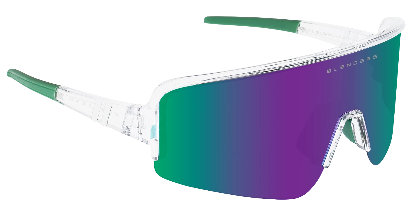 Life’s a wild ride—and ‘Adventure Land‘ is the perfect companion. Part of our progressive ‘Eclipse X2‘ activewear collection, these full shield sunglasses were made for racing into a world of wonder. The polarized wraparound lens delivers a wide field of view and a dazzling rainbow gradient, while the crystal clear frame with contrasting temple tips offers a daring dash of fun. A lightweight, semi-rimless design and adjustable nose pads go all-in on comfort, too! //