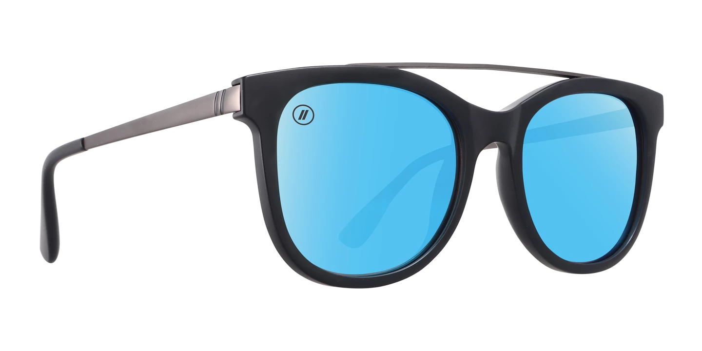 Get your shine on with ‘Bling Moon.’ Part of the ‘Balboa’ collection, these stunners are defined by a prominent brow bar and the deft use of mixed materials for an upscale punch. The matte black frame is made from flexible, impact-resistant TR90 thermoplastic, while the temples are crafted with a sturdy mix of stainless steel and high nickel silver in a stealthy gunmetal tone. Bling Moon then “sticks the landing” with an icy blue polarized lens for thrilling contrast. Get yours now or risk getting hit with that “Out of Stock” notice! //