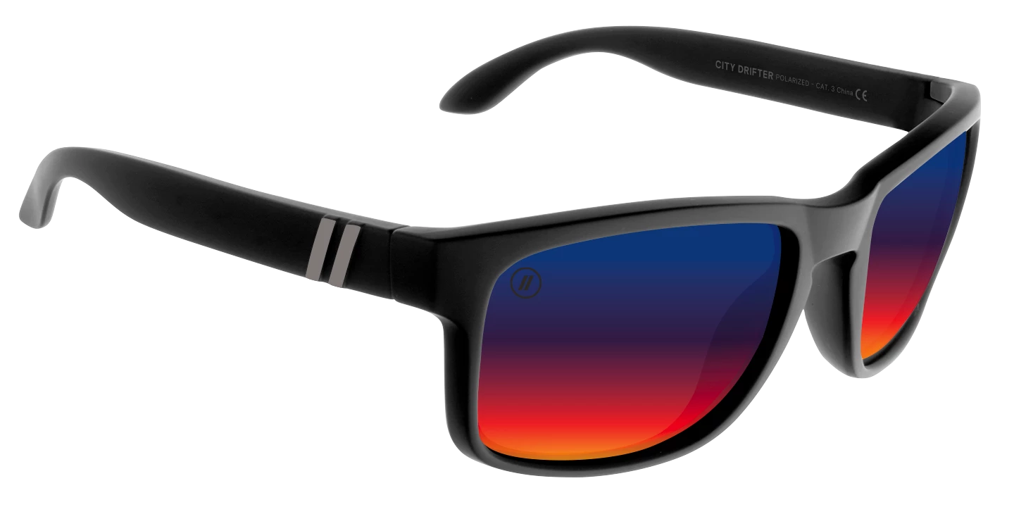Just like you, ‘City Drifter‘ is always in its element. An all-around pair ideal for the big city or the great outdoors, these wraparound sunglasses are designed for superior protection and coverage. The black, rubberized TR90 frame is flexible and durable enough to keep up with all your pursuits, and the polarized blue to red lens delivers a rainbow effect for an extra splash of style. //