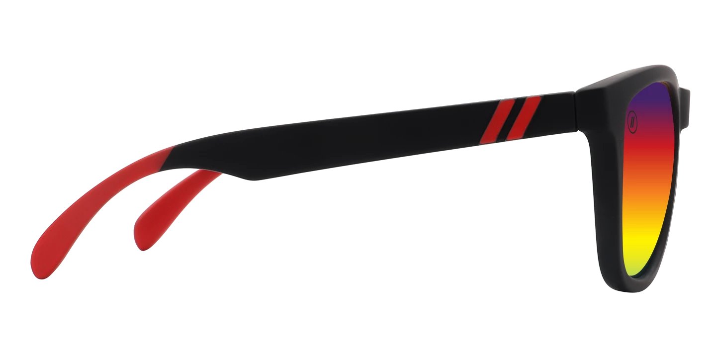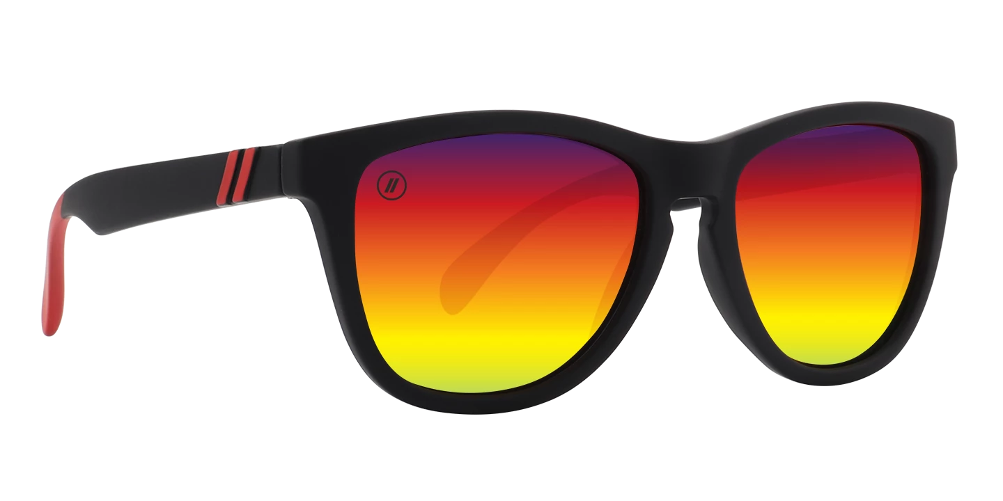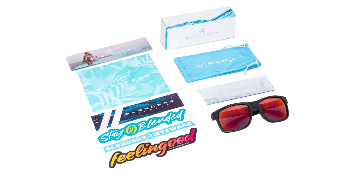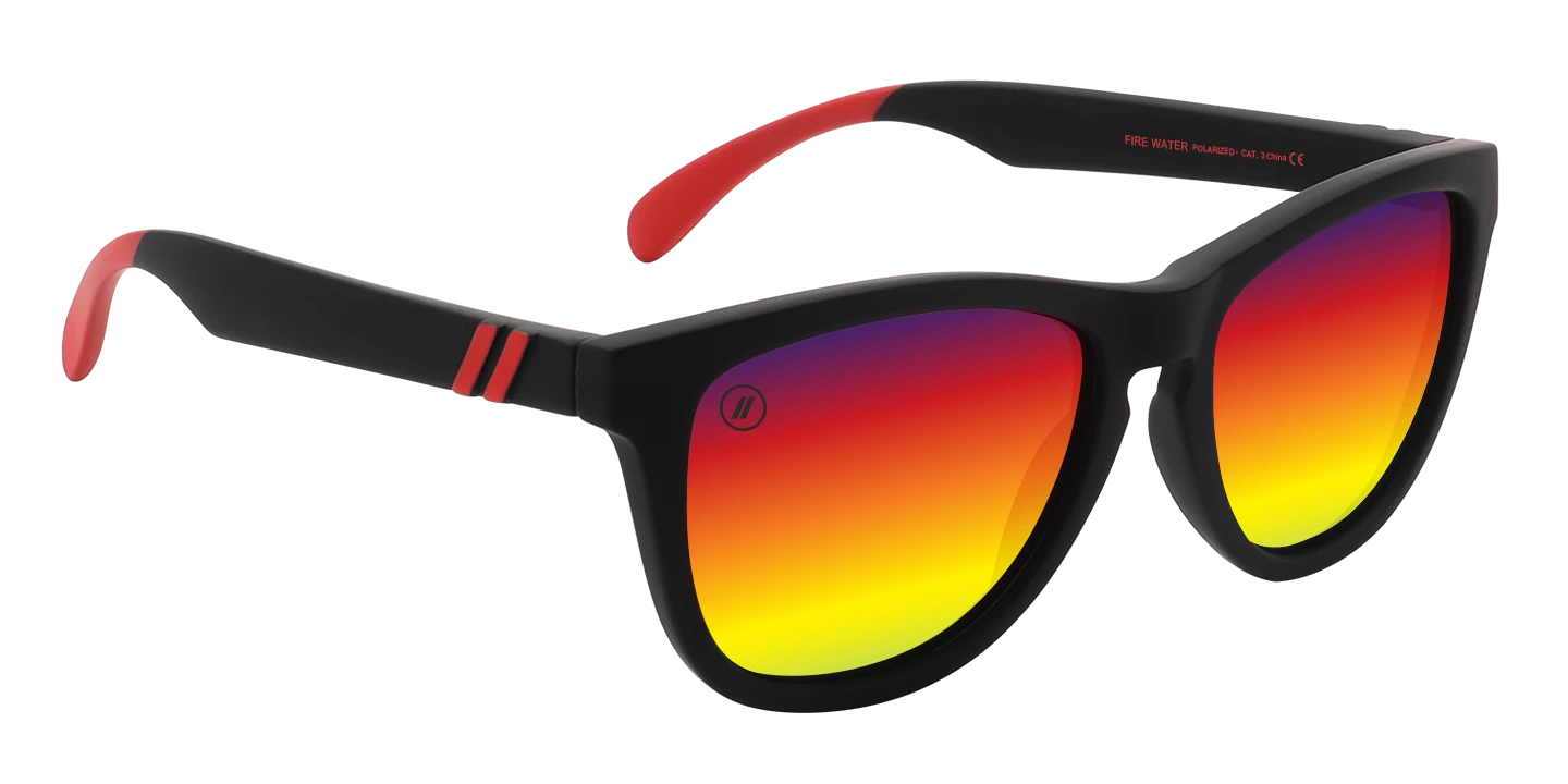 Bring the heat with ‘Fire Water!’ These shades contrast a cool matte-black frame with flaming red temple tips and a polarized gradient lens that’s like a fiery sunset on steroids. And because ‘Float₂O’ shades won’t sink in the water, you can take these buoyant Blendz just about anywhere. //