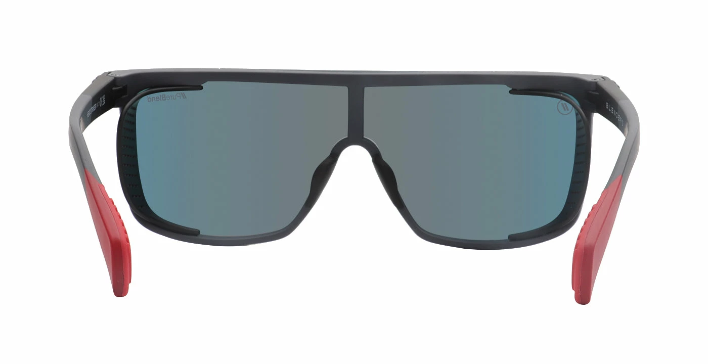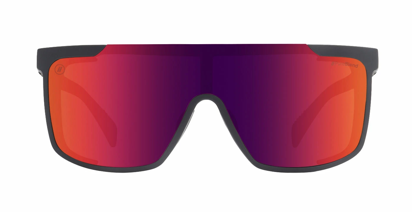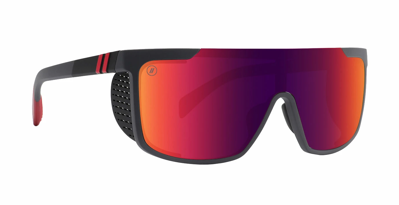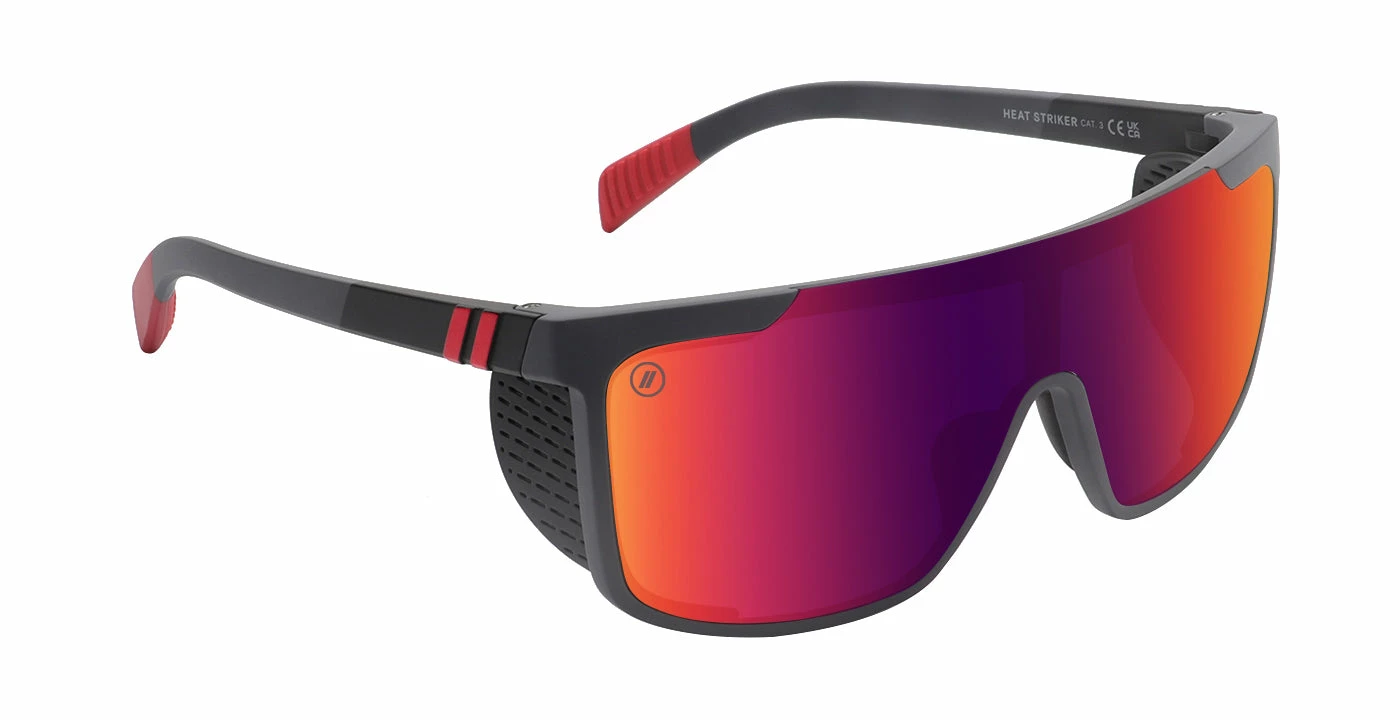 Get out there and get after it with the progressive style of ‘Heat Striker,’ part of our ‘Active SciFi Collection.’ These sunglasses smartly feature removable side shields, letting you choose how you tackle the day. Rubberized nose pads and temple tips enhance fit and feel, and the gunmetal-colored frame is strikingly contrasted by a crimson PureBlend Lens, available in your choice of polarized or non-polarized. //