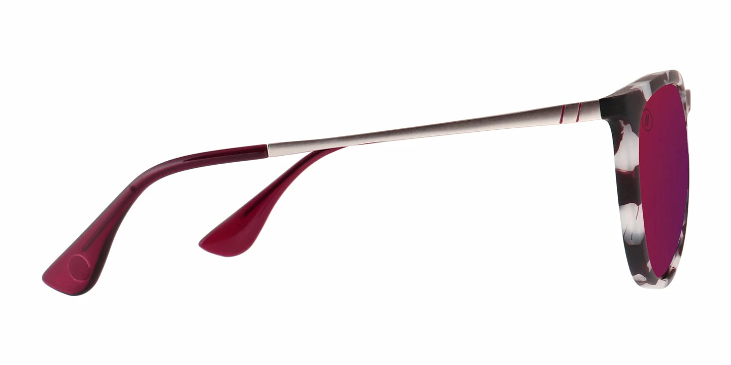 It says it right in the name—‘Lotsa Heat‘ brings the fire. 100% UVA/UVB protection and anti-salt-water coatings kick things off, but it doesn’t stop there. A stunning black/silver tortoise frame encircles crimson round lenses, while at the sides, matte-finished metal arms are contrasted by crystal red temple tips. It’s a look ideal for anyone seeking to “Blend Out,” not blend in. //