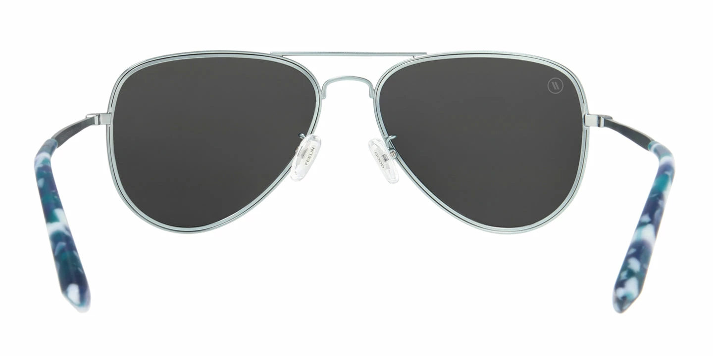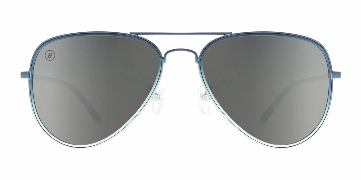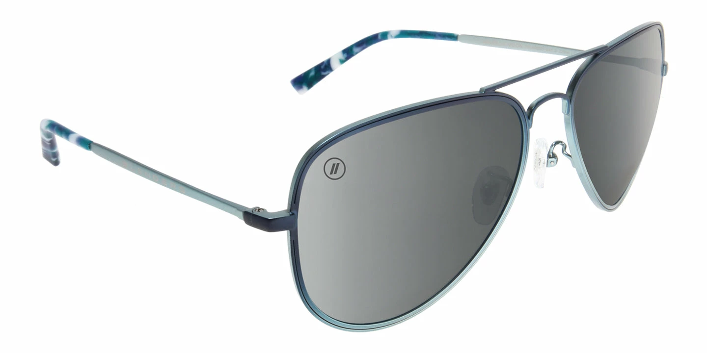 Stunt on ‘em with our ‘Maliblue Moon’ shades. These blend the tried-and-true appeal of the aviator aesthetic with the allure of modern detailing. The frames encircling the polarized silver mirror lenses glide on a gradient from blue to light blue, with the latter hue stretching down the temple arms. The ear rests create serious visual interest and sublime cohesion with a blue tortoise acetate reflecting the dual tones of the frame. That’s a lot to take in, we understand, but just know this—with ‘Maliblue Moon’ on, no one’s gonna eclipse your style. //