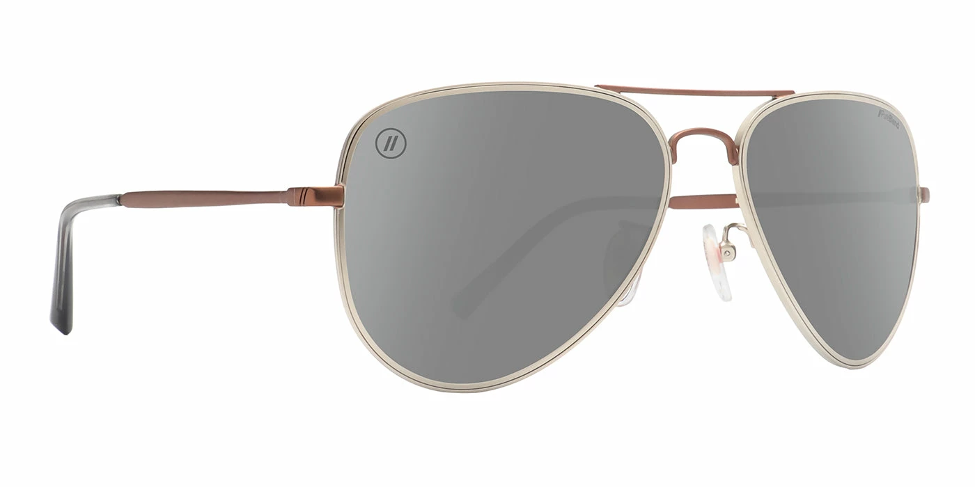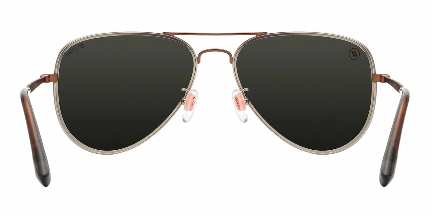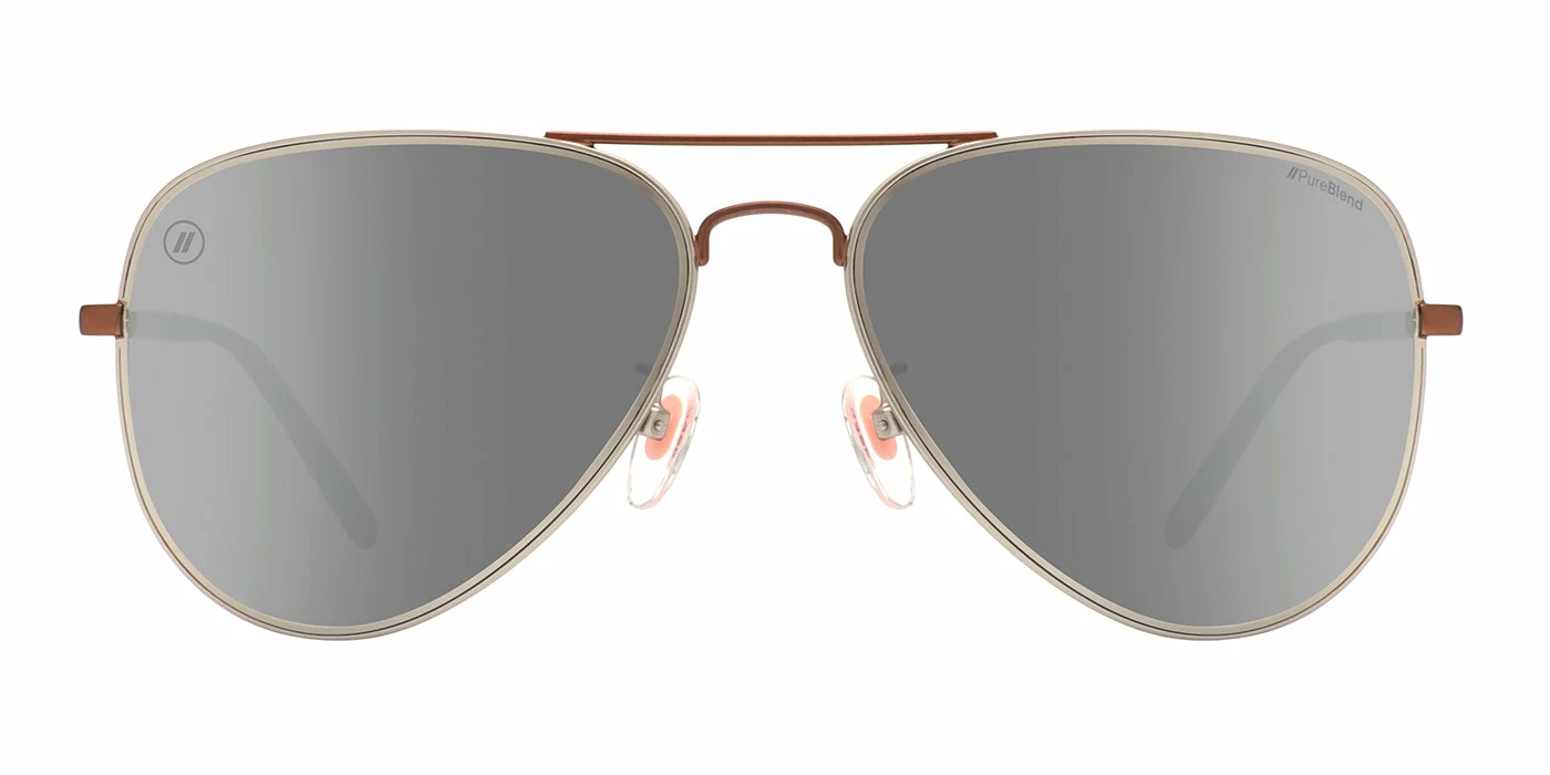 ‘Mojave Gold‘ is a pure expression of the design ethos behind our ‘All Day, Every Day Collection’ — bold Blenders style wrapped in timeless tones. These aviator sunglasses rock a classic two-tone aesthetic, with a silver-hued frame contrasted by a bronze-colored brow bar and temples. Best of all, you’ll benefit from the superior clarity and durability of our PureBlend lens, available in your choice of polarized or non-polarized. //