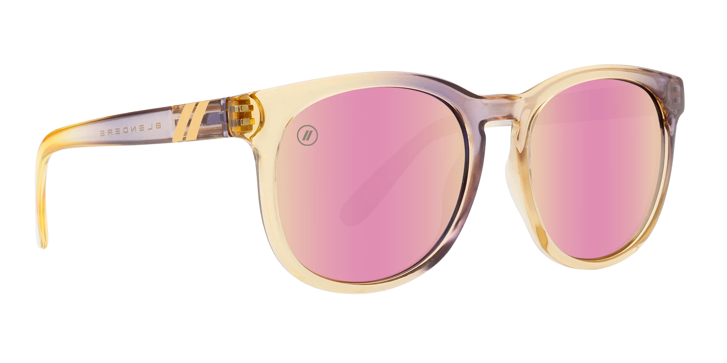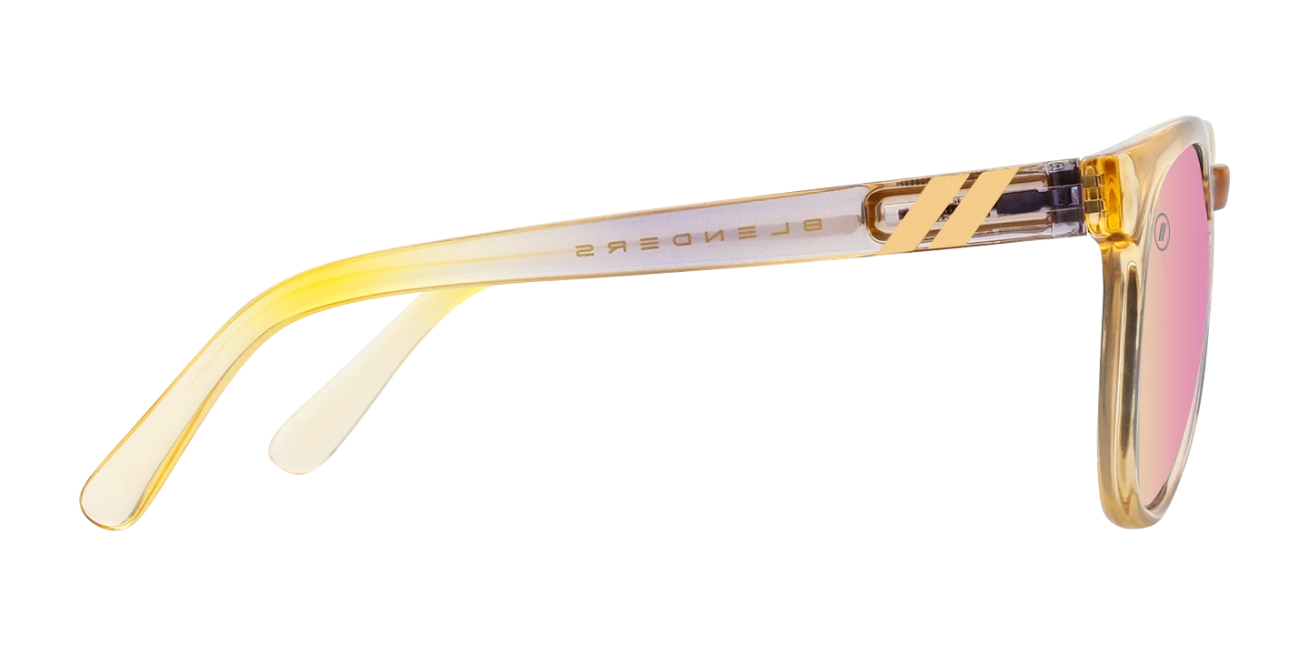 When life gives ya lemons, you make what you can of it. But when it gives ya ‘Pink Lemonade,’ you take it and run. This is style that has no substitute—round cat eye sunglasses that vibe with any look. A glossy crystal mango base color starts things off, fading fantastically to pink and back again across the lightweight frame. Temples shift from pink to yellow to mango, creating a beautiful blend of lemonade vibes. It’s all finished with a polarized pink lens because these shades are about glam, not glare. //