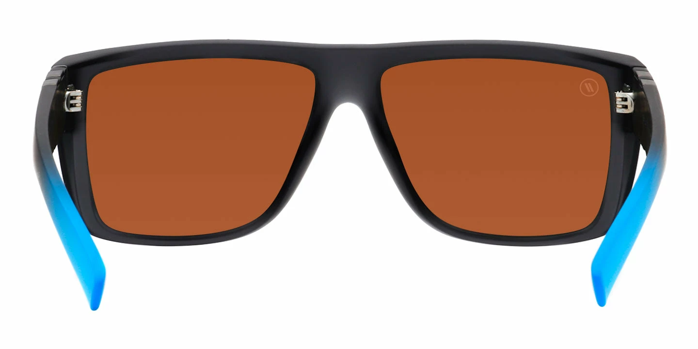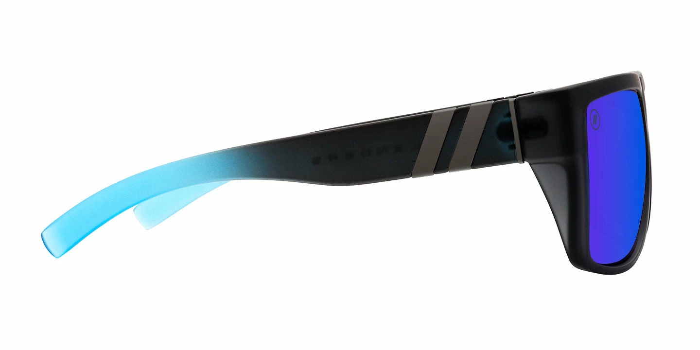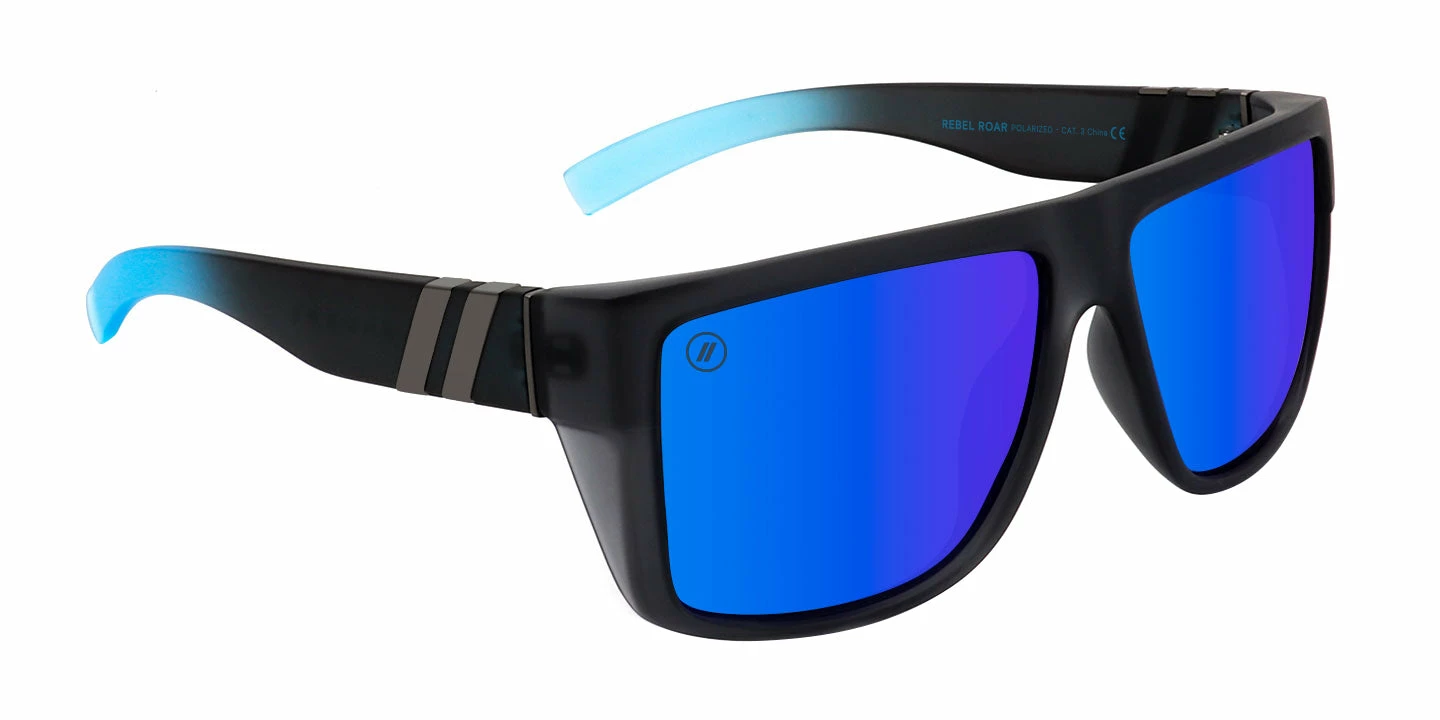 Live Forward and Blend Boldly with ‘Rebel Roar.‘ Part of our ‘Ridge’ collection, these rectangular sunglasses combine a flat-top look with a semi-transparent, gray-to-blue fade for an awesome outburst of style. A polarized blue lens, protective peripheral shields, and a gunmetal end cap round out this robust design. //