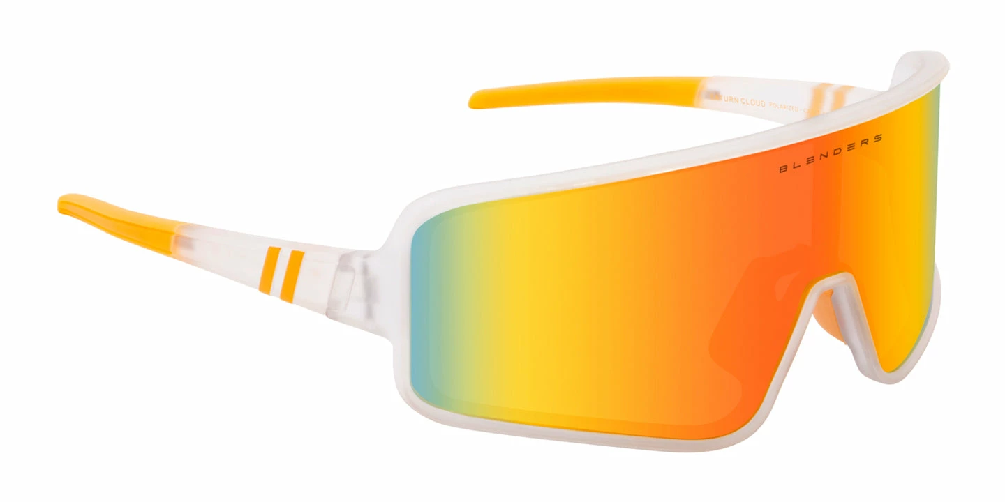 Set the pace with the fast-lane fashion of ‘Saturn Cloud.’ These wraparound sunglasses—Blenders’ first—represent the perfect fusion of activewear and lifestyle design. They deliver full face protection and polarized lenses for enhanced clarity, putting you at your best every time out. And the colorway crushes it, with an extraordinary half-transparent clear frame, two-tone temples, and glowing orange lens. You’re about to set a personal record for style! //