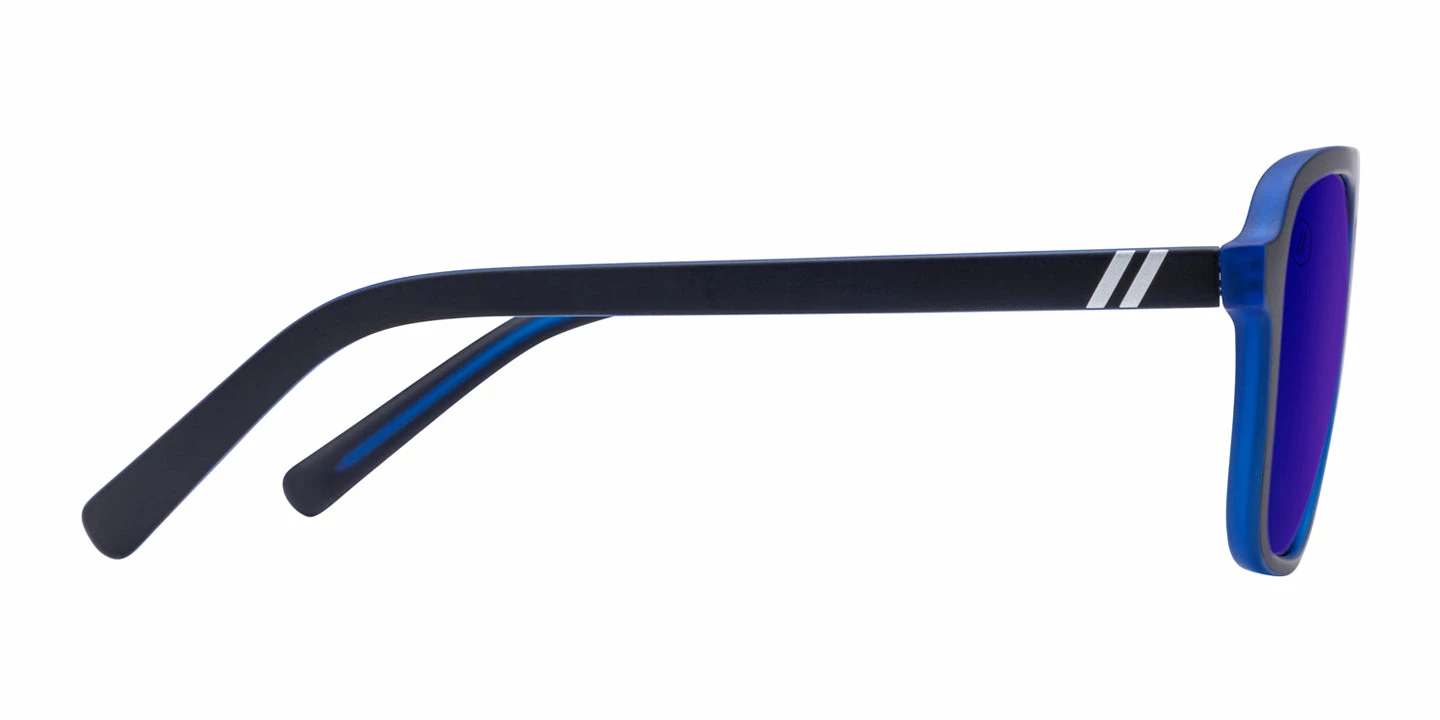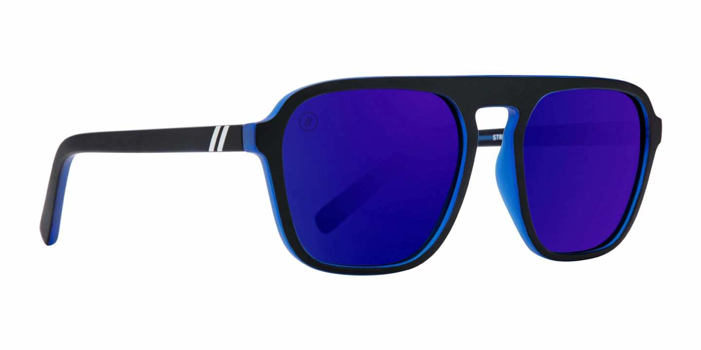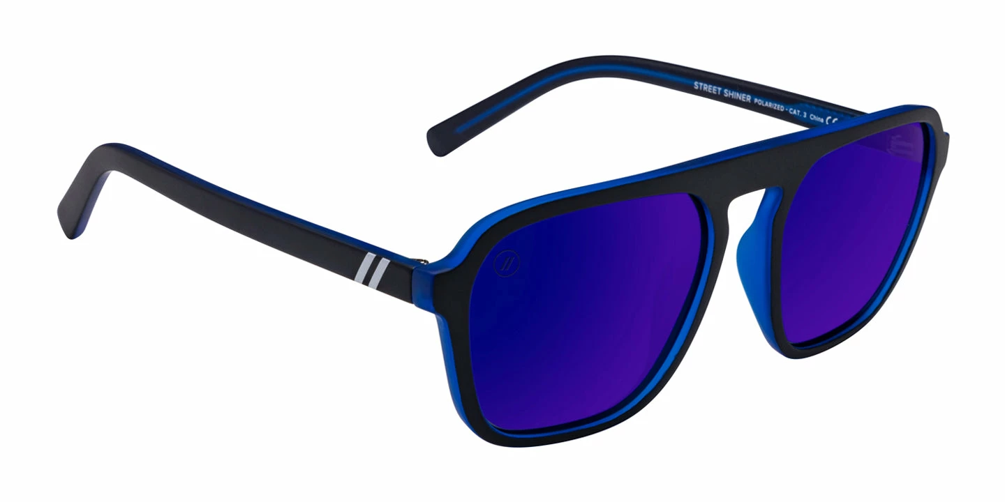 We dabbled with dual personality in ‘Street Shiner.’ On the outer frame, we doused everything in wardrobe-friendly solid matte black—these sunnies will definitely go with whatever else you’re wearing. But the interior flashes extra personality with a semi-transparent crystal blue accent that runs along the front rim and complements those beautiful blue polarized lenses. It’s a badass balance between restraint and liberty in design—and you’re going to absolutely crush it in these. //