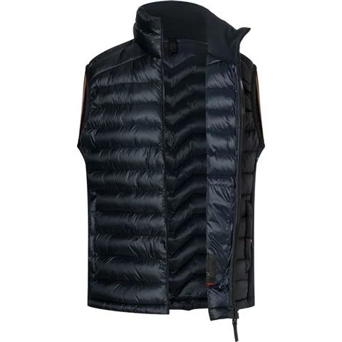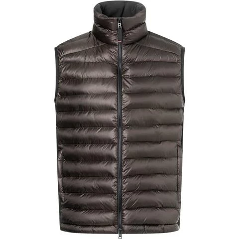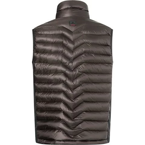 Lightweight ripstop vest with 4-Way stretch sides. Shiny tonal F+I print at left side. Elastic binding at arm holes. Rubber logo at upper center back.